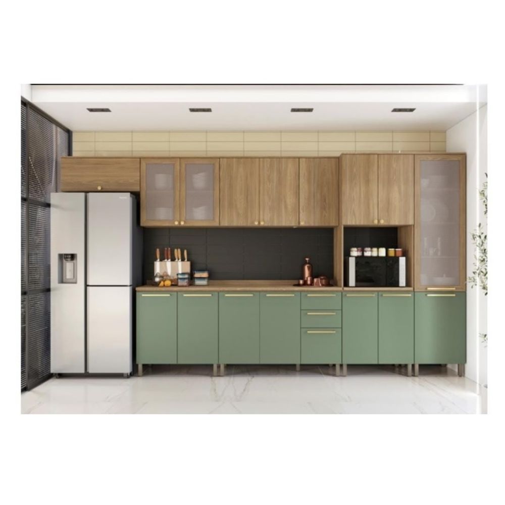 Cozinha Kappesberg Botanic 16 Portas 03 Gavetas - Nogueira/Verde Oliva